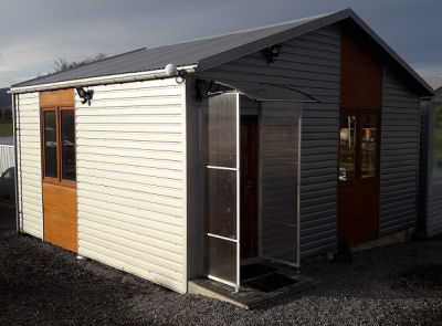 Mały domek, który może być zaadoptowany jako salon sprzedaży, biuro firmy, punkt usługowy itd.